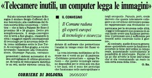 Ieri il Corriere ha riportato in un articolo alcune mie affermazioni sulle nuove tecnologie di videosorveglianza di cui discuteremo in un convegno europeo che stiamo organizzando per fine giugno.